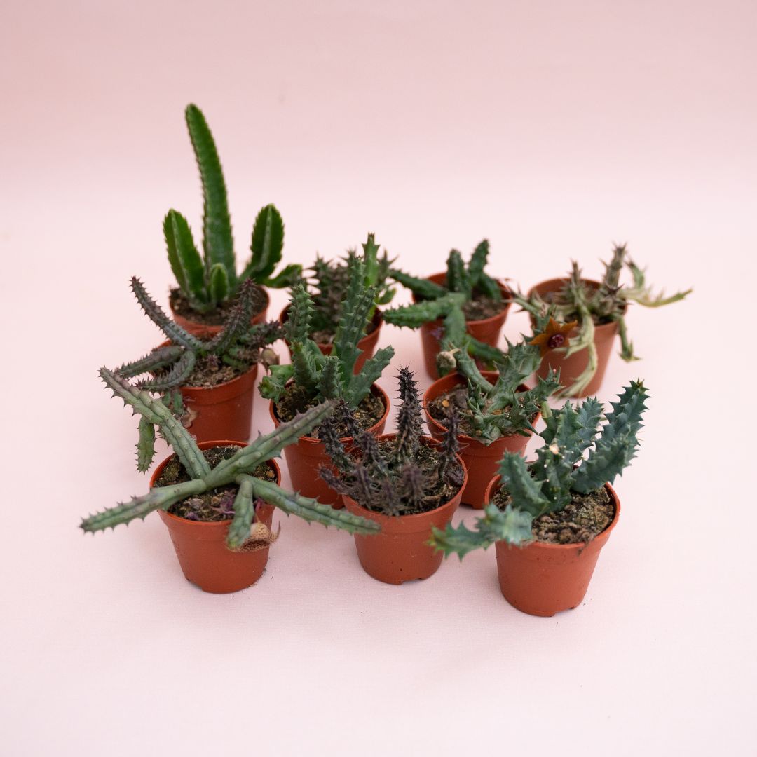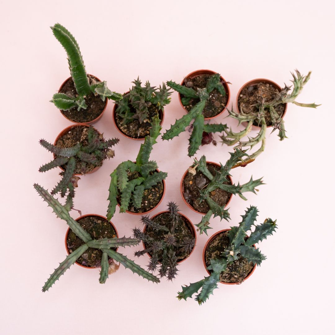 Appartenant à la famille des Asclepiadaceae, cette collection de 10 Asclepiadaceae est fournie dans un pot Ø 5,5 cm avec une étiquette portant le nom botanique.