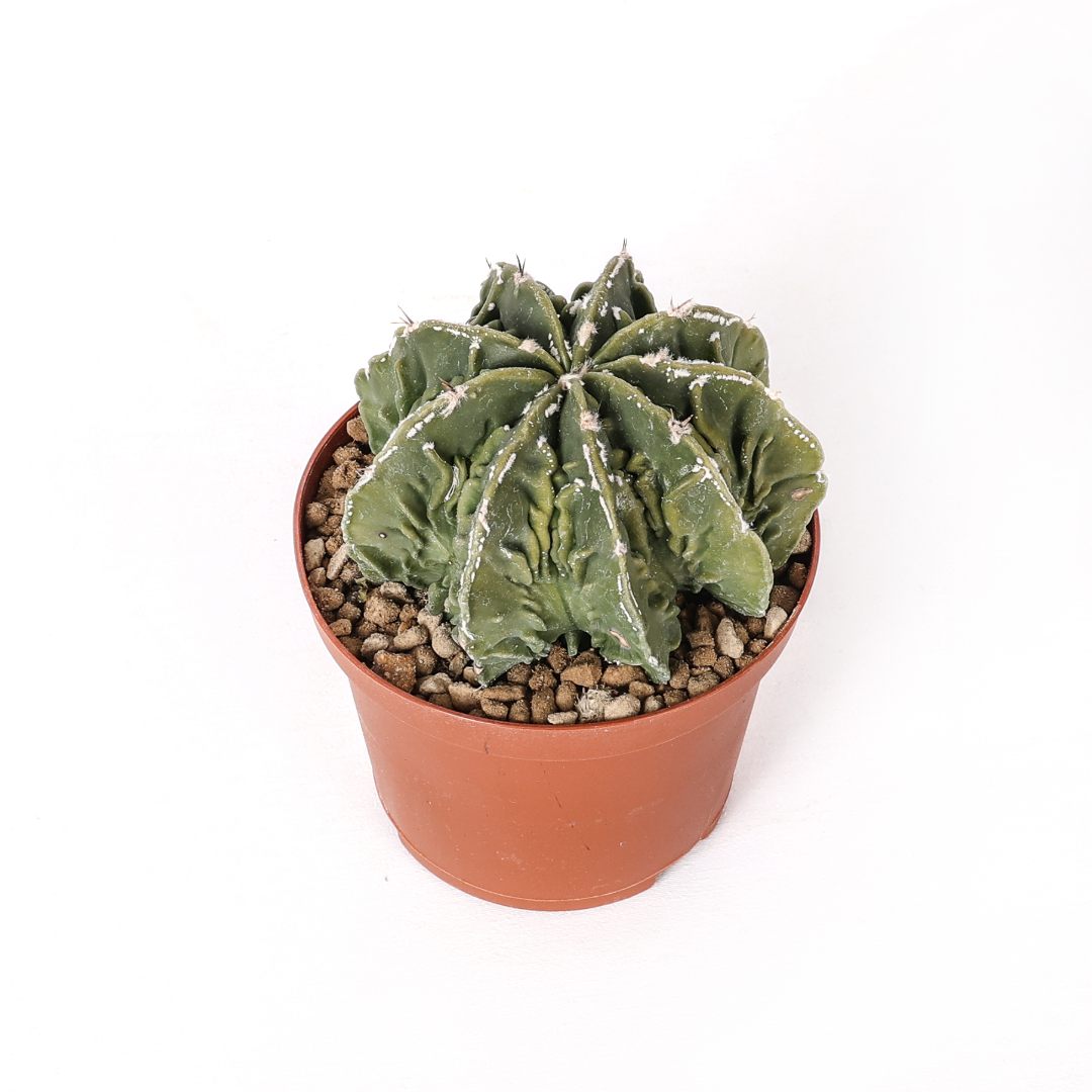 Appartenant à la famille des Cactaceae, ce cactus fleurit dans des conditions optimales, produisant des fleurs en forme de cloche d’un jaune éclatant, qui s’épanouissent pendant l’été. Ces fleurs, qui apparaissent au centre de la plante, créent un contraste enchanteur avec le vert de la peau. Il est également à noter que chaque spécimen présente un design unique, fruit des spécificités de son développement.