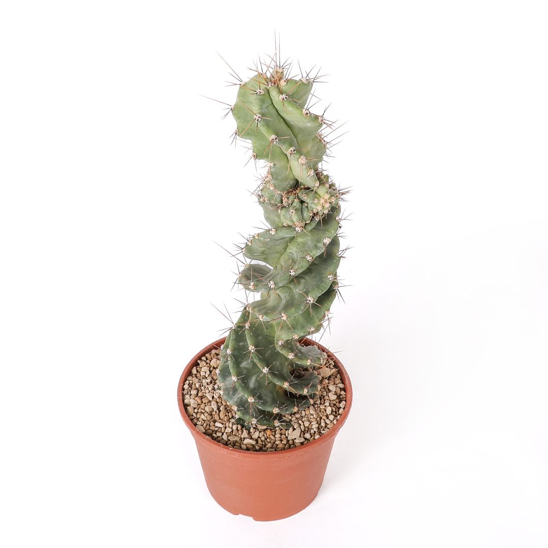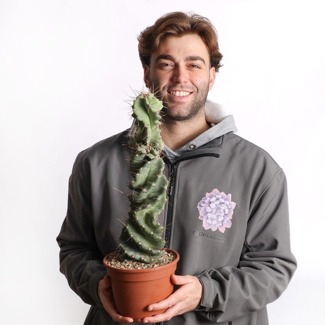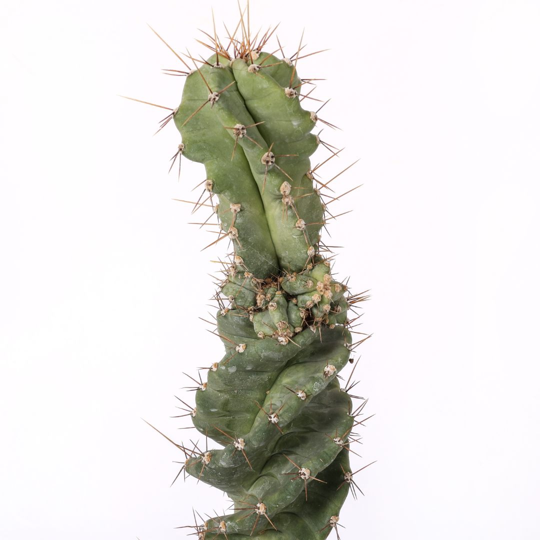 Cereus forbesii spiralis, célèbre pour sa croissance sculpturale qui vrille les côtes de la tige sur elles-mêmes. Plante résistante, sculpturale et ornementale. Nécessite peu d’entretien, aime la lumière et redoute les excès d’eau. Parfaite pour ceux qui recherchent esthétique et forme.