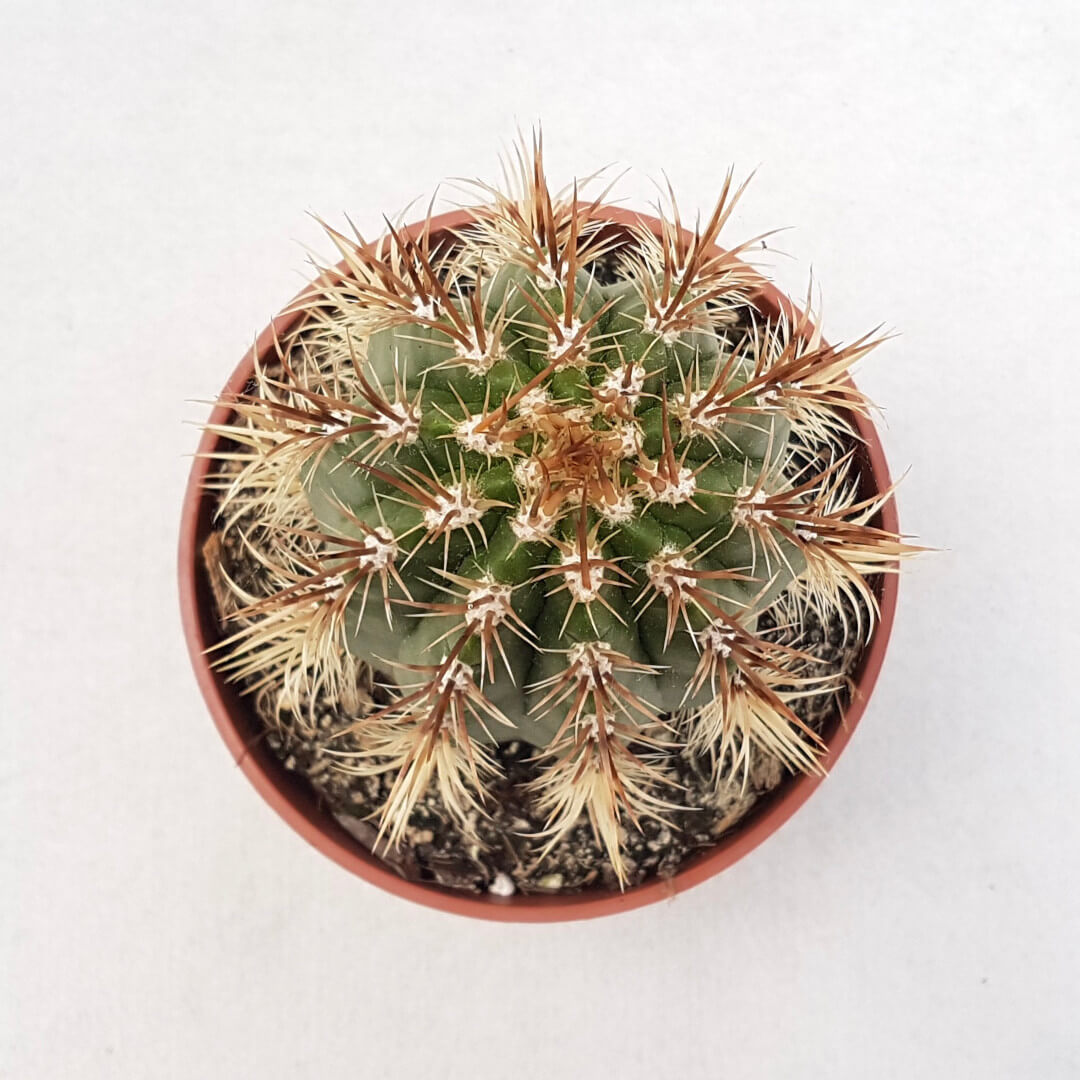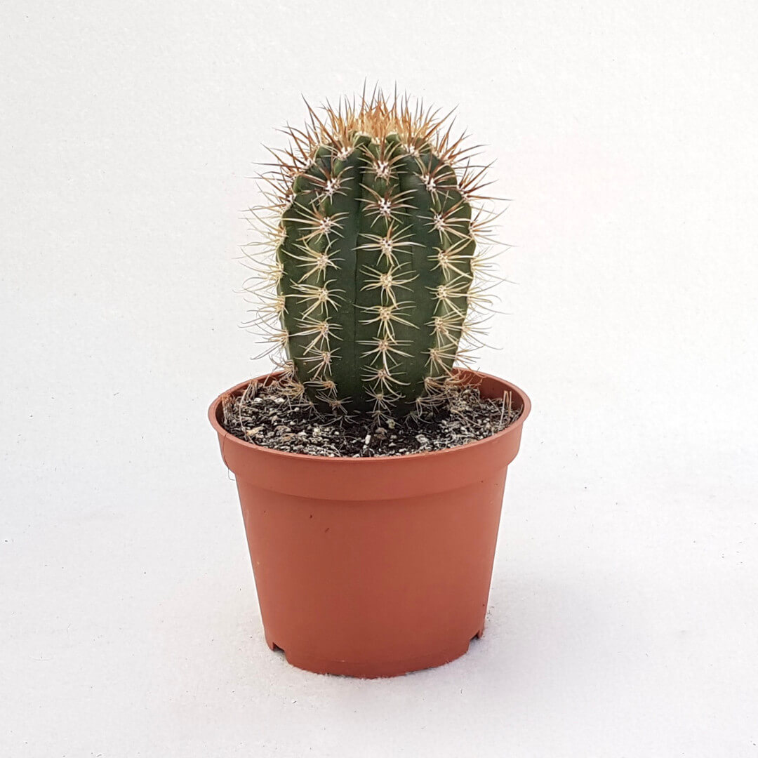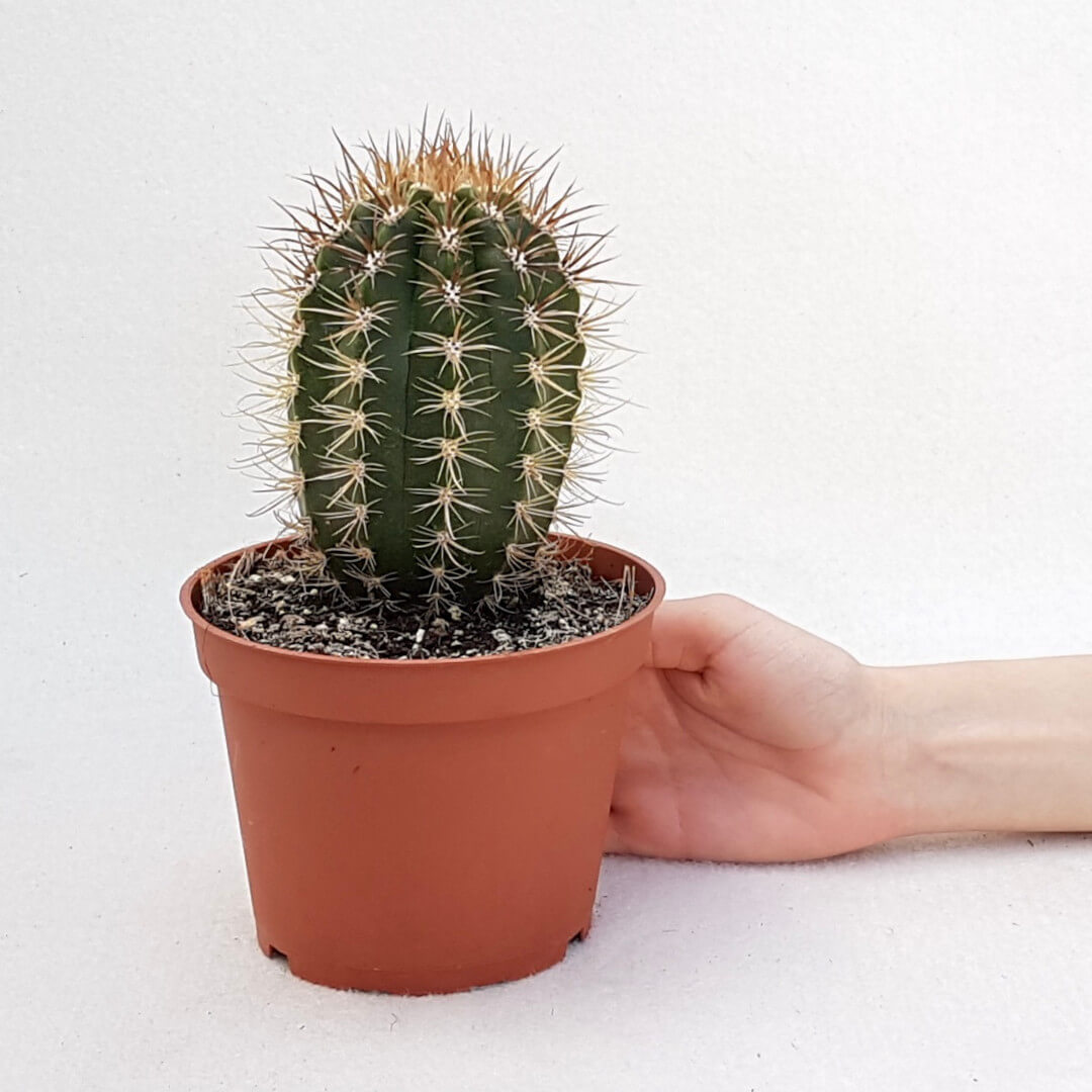 Appartenant à la famille des Cactaceae, cette plante de Coleocephalocereus goebelianus est fournie dans un pot Ø 13 avec une étiquette portant le nom botanique.