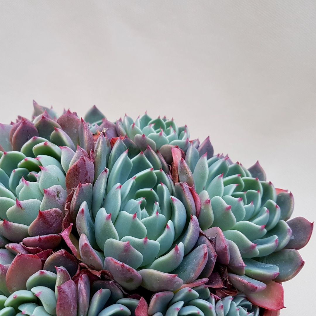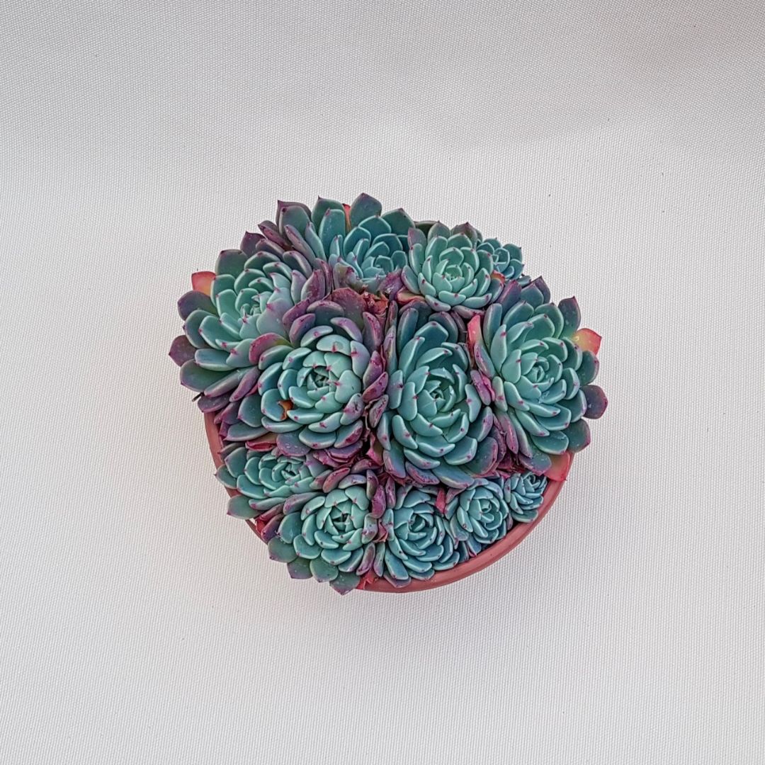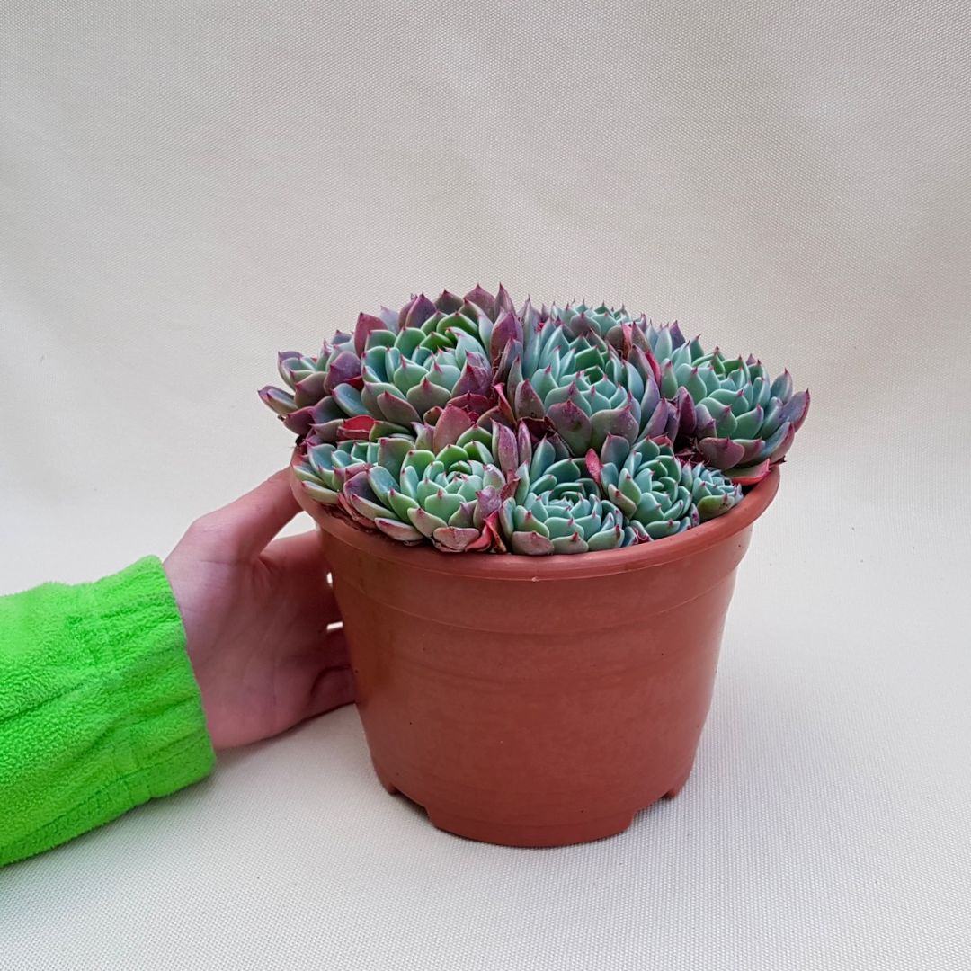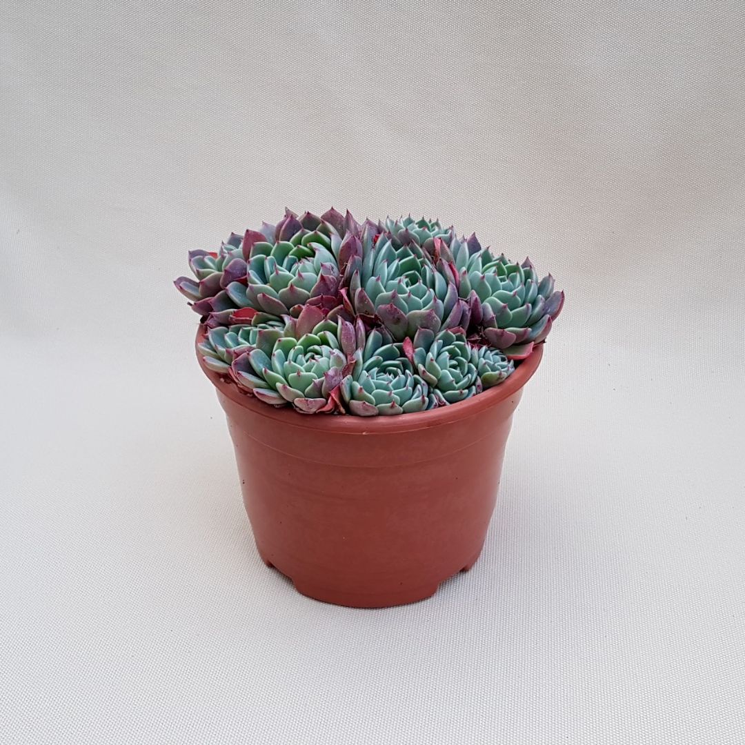 Appartenant à la famille des Crassulaceae, cette plante de Echeveria sitifukumiama est fournie dans un pot Ø 17 avec une étiquette portant le nom botanique.