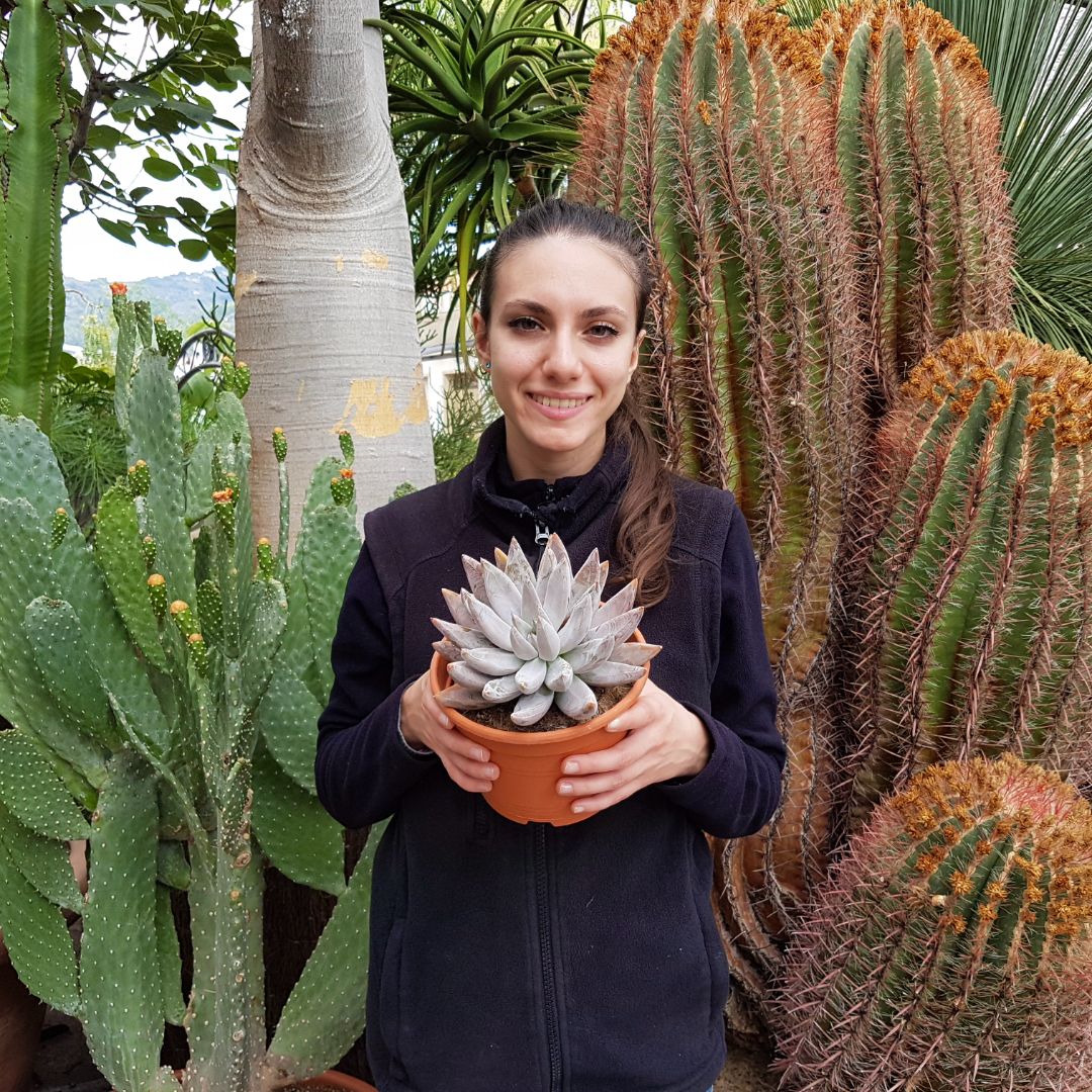 Appartenant à la famille des Crassulaceae, cette plante de Echeveria tolimanensis est fournie dans un pot Ø 17 avec une étiquette portant le nom botanique.