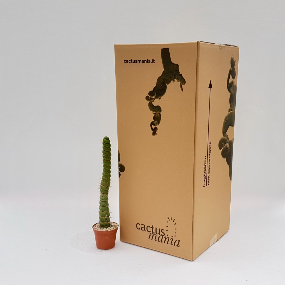 Appartenant à la famille des Cactaceae, cette plante de Eulychnia castanea spiralis est fournie dans un pot Ø 12 cm avec une étiquette portant le nom botanique.