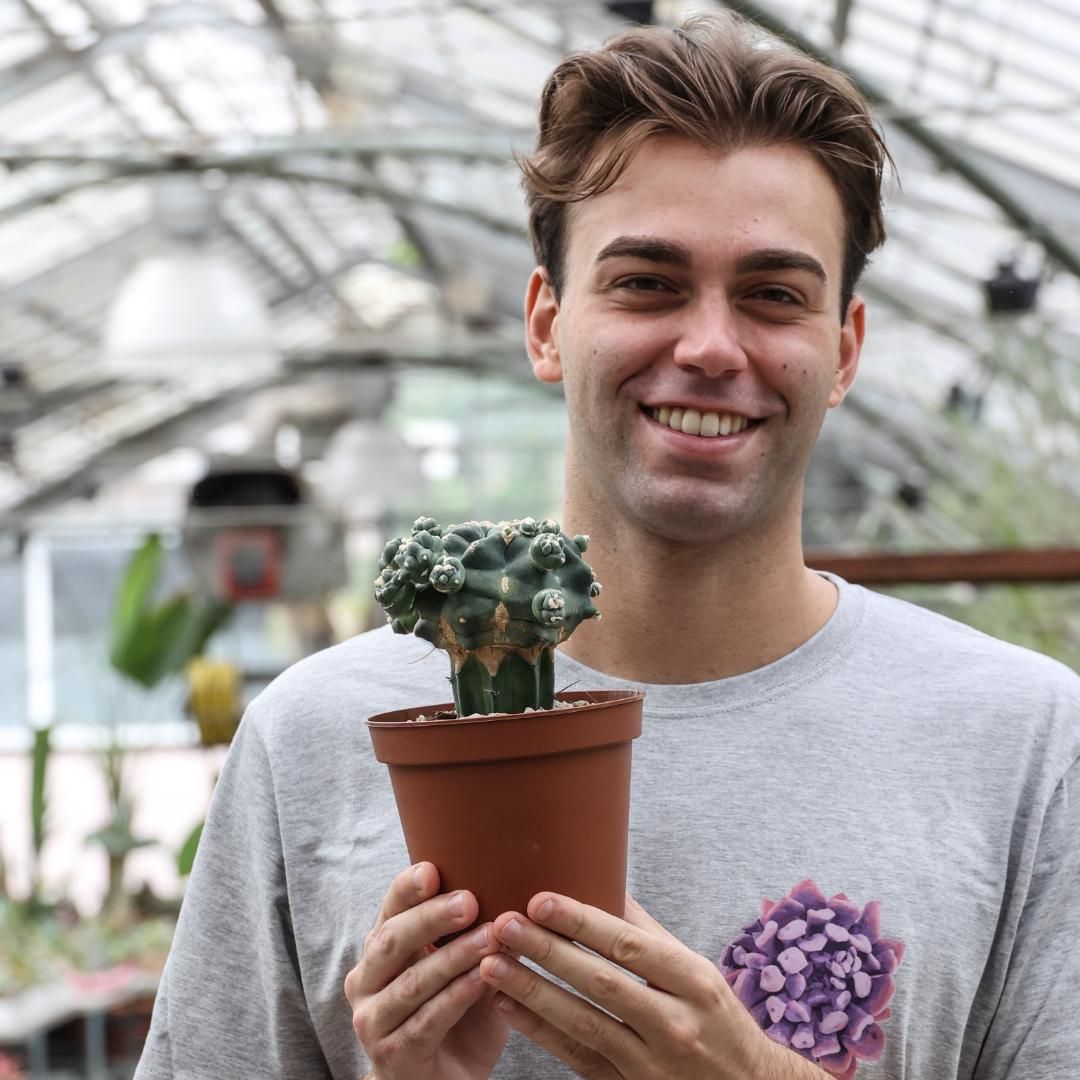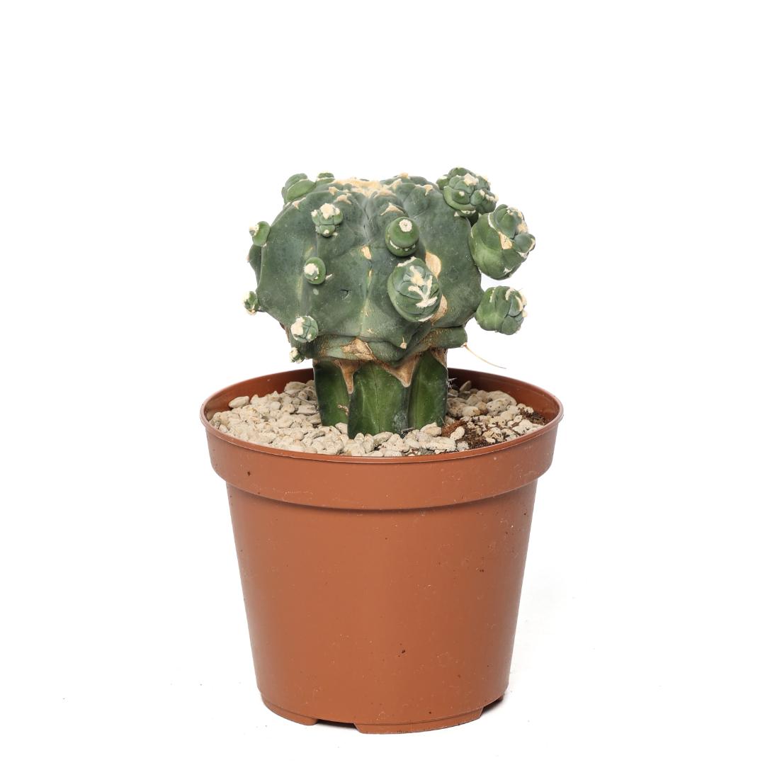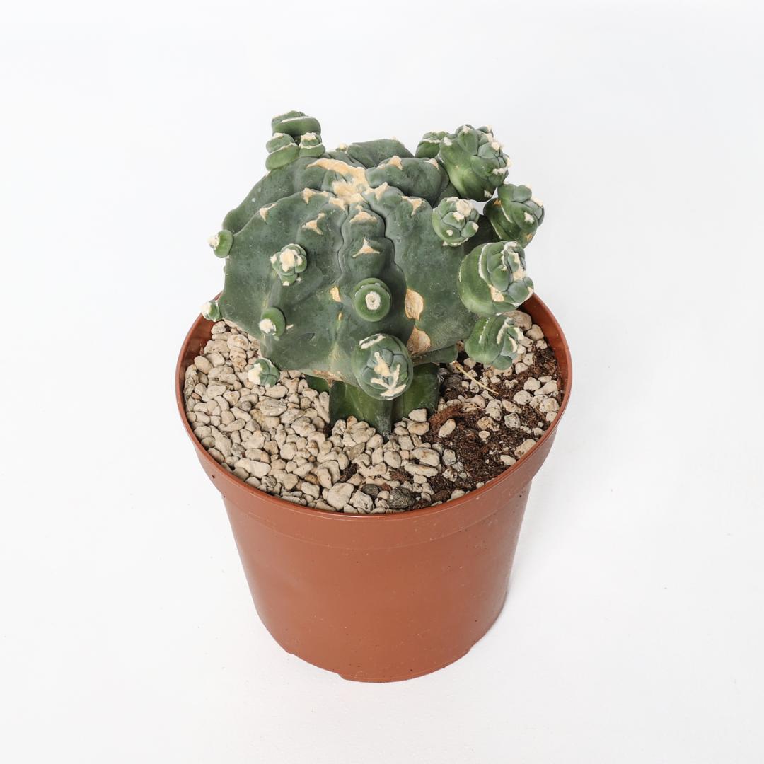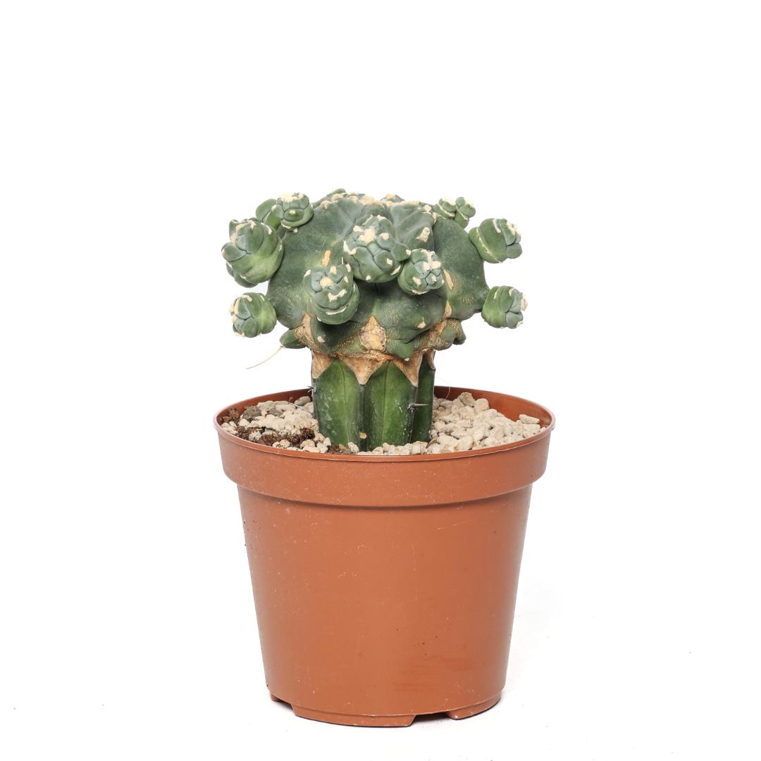 Appartenant à la famille des Cactaceae, cette plante rare de Ferocactus glaucescens nudum mostruoso est fournie dans un pot Ø 14 cm avec une étiquette portant le nom botanique.