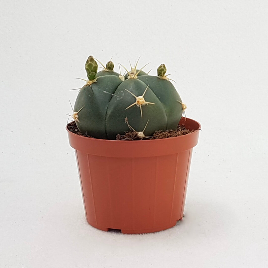 Appartenant à la famille des Cactaceae, cette plante de Gymnocalycium horstii est fournie dans un pot Ø 12 avec une étiquette portant le nom botanique.