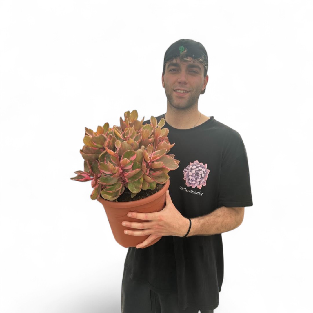 Appartenant à la famille des Crassulaceae, cette plante de Kalanchoe variegata est fournie dans un pot Ø 25 cm avec une étiquette portant le nom botanique.