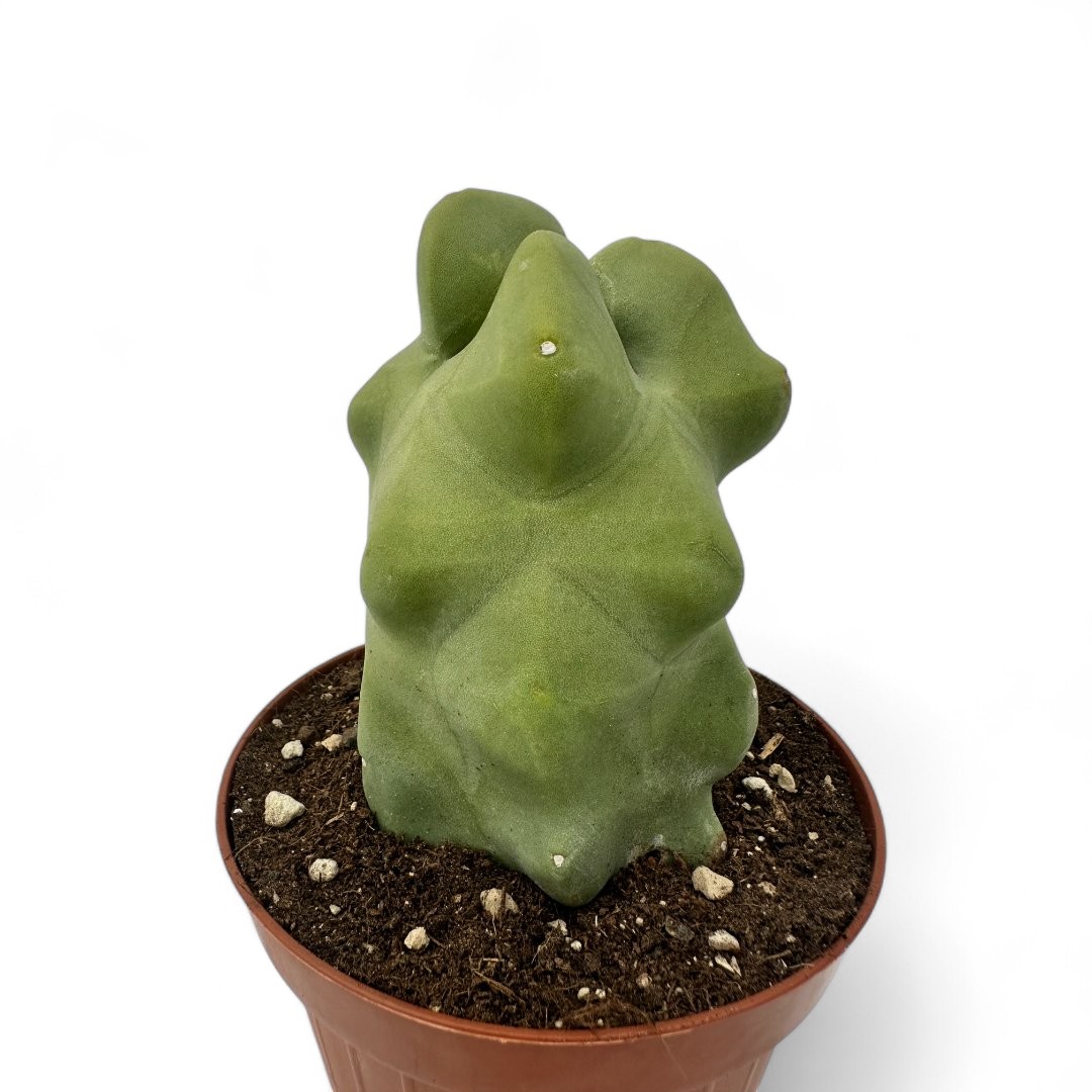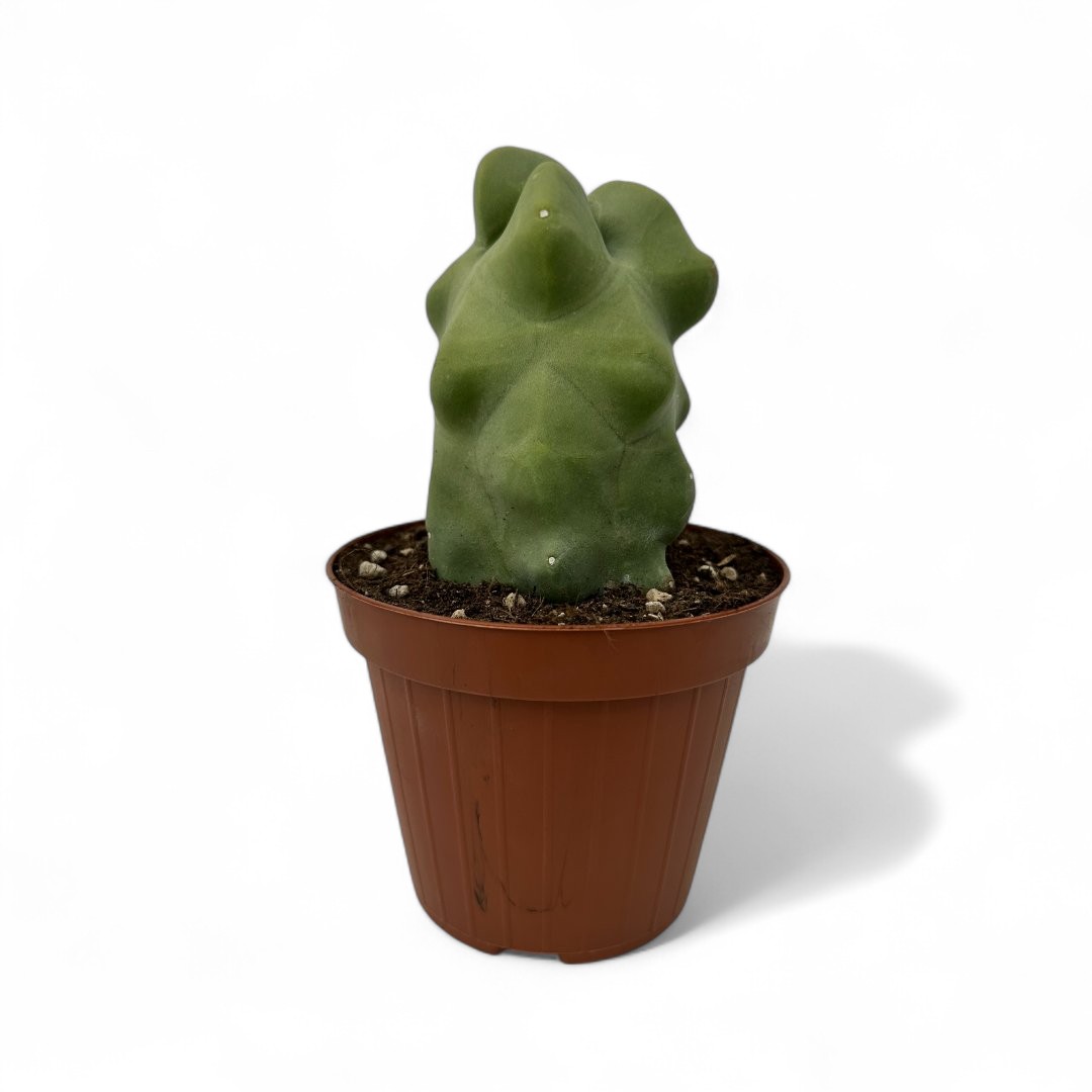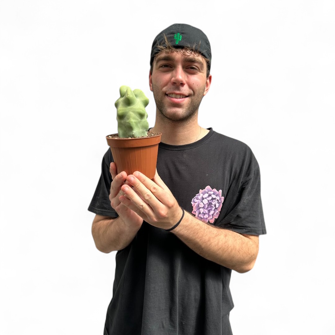 Appartenant à la famille des Cactaceae, cette plante de Lophocereus schotti mostruoso est fournie dans un pot Ø 12 cm avec une étiquette portant le nom botanique.