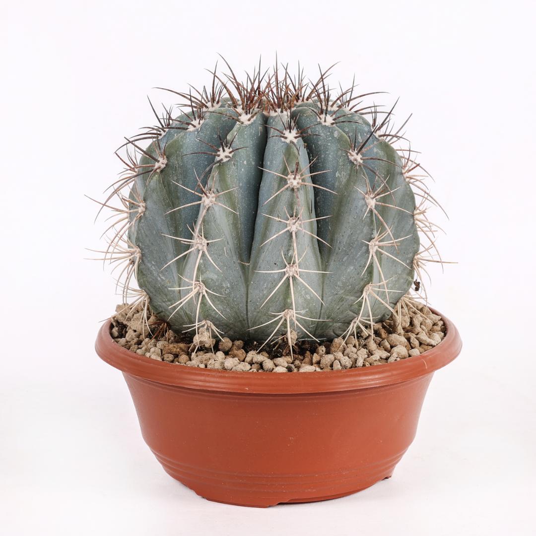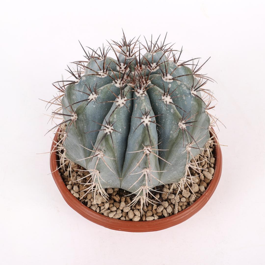 Melocactus azureus, de couleur bleu-gris et au céphalium rose élégant. Ce Melocactus originaire du Brésil aime la chaleur, la lumière du soleil et un terrain modérément drainé. Un choix parfait pour les amateurs de Cactacées particulières.