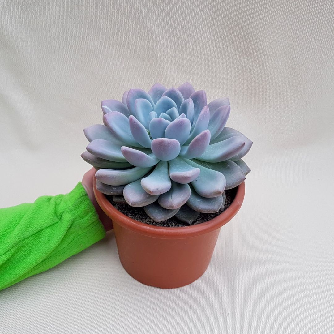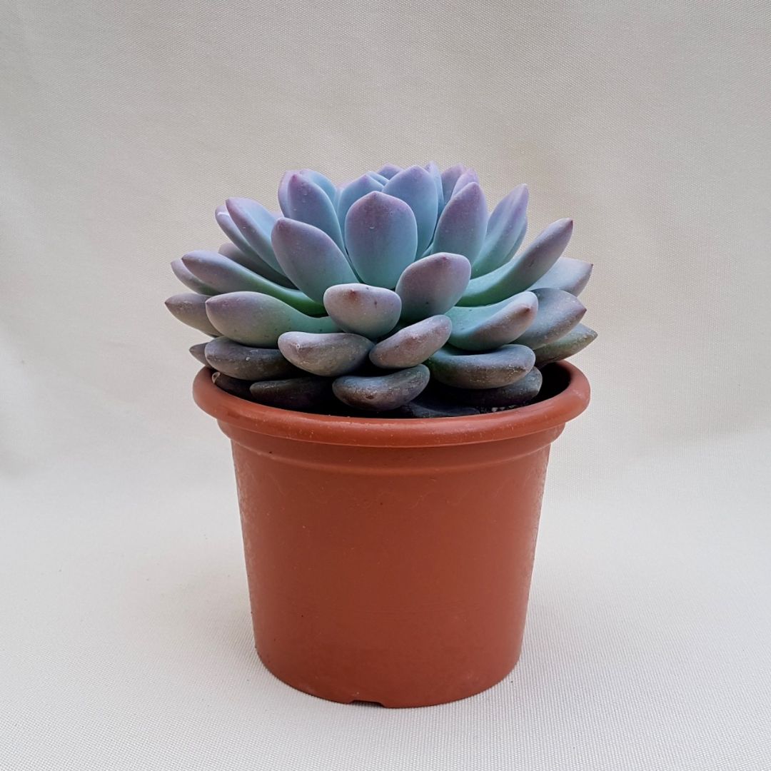 Appartenant à la famille des Crassulaceae, cette plante de Pachyveria sp est fournie dans un pot Ø 18 avec une étiquette portant le nom botanique.