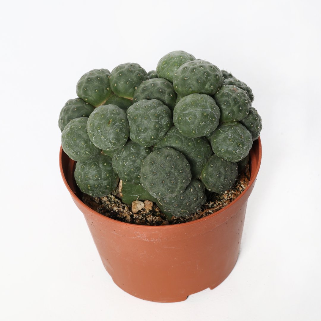 Appartenant à la famille des Cactaceae, cette plante de Puna bonnieae inermis est fournie dans un pot Ø 10,5 avec une étiquette portant le nom botanique.