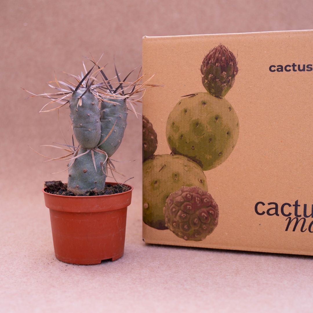 Appartenant à la famille des Cactaceae, cette plante de Tephrocactus articulatus ‘Black Thorn’ est fournie dans un pot Ø 10,5 cm avec une étiquette portant le nom botanique.