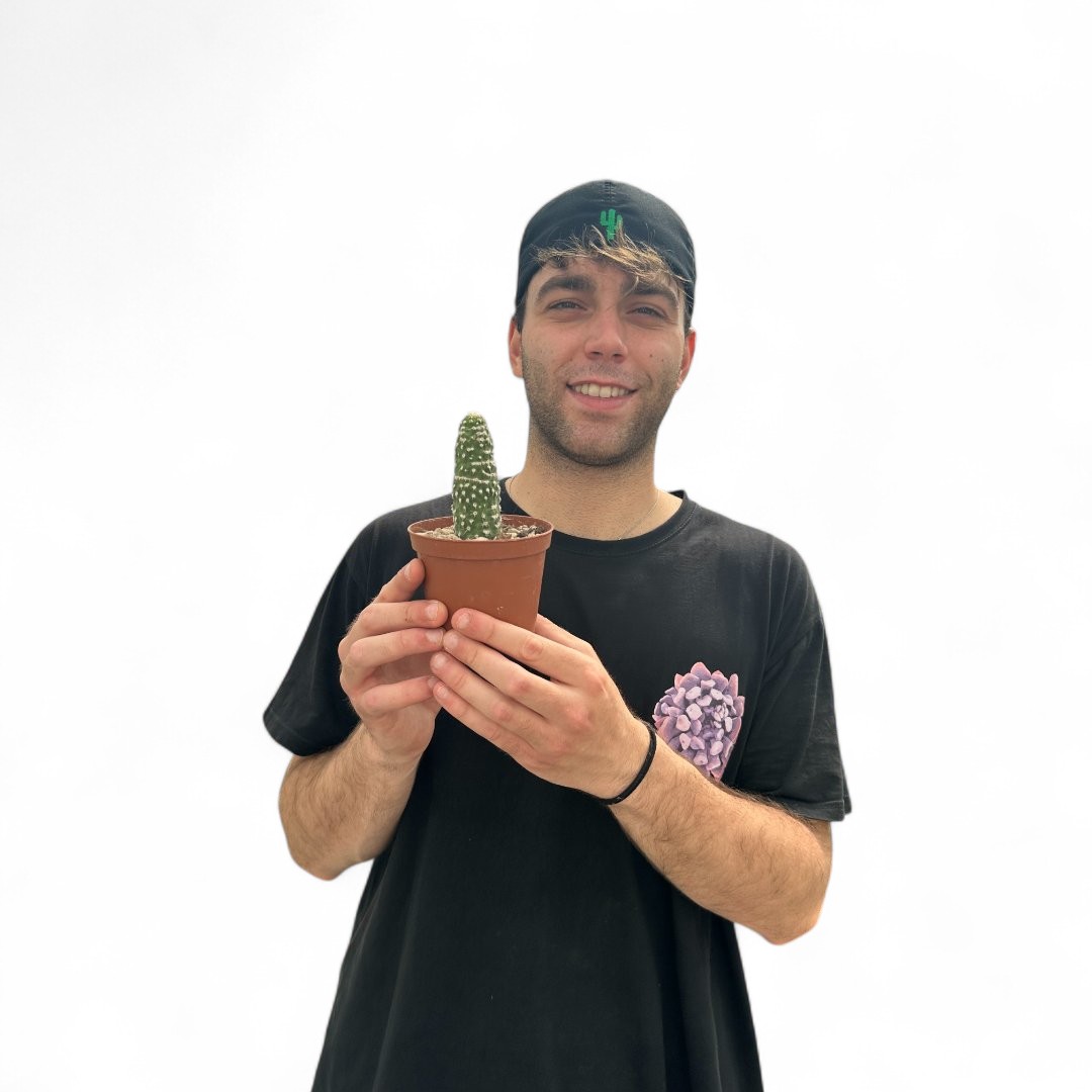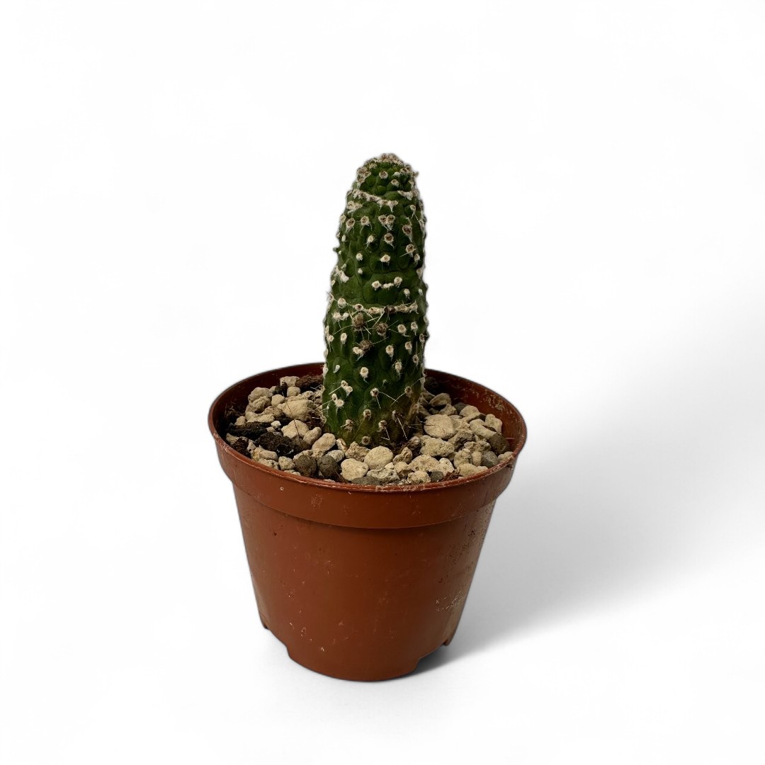 Appartenant à la famille des Cactaceae, cette plante de Trichocereus spachianus mostruoso est fournie dans un pot Ø 10,5 cm avec une étiquette portant le nom botanique.