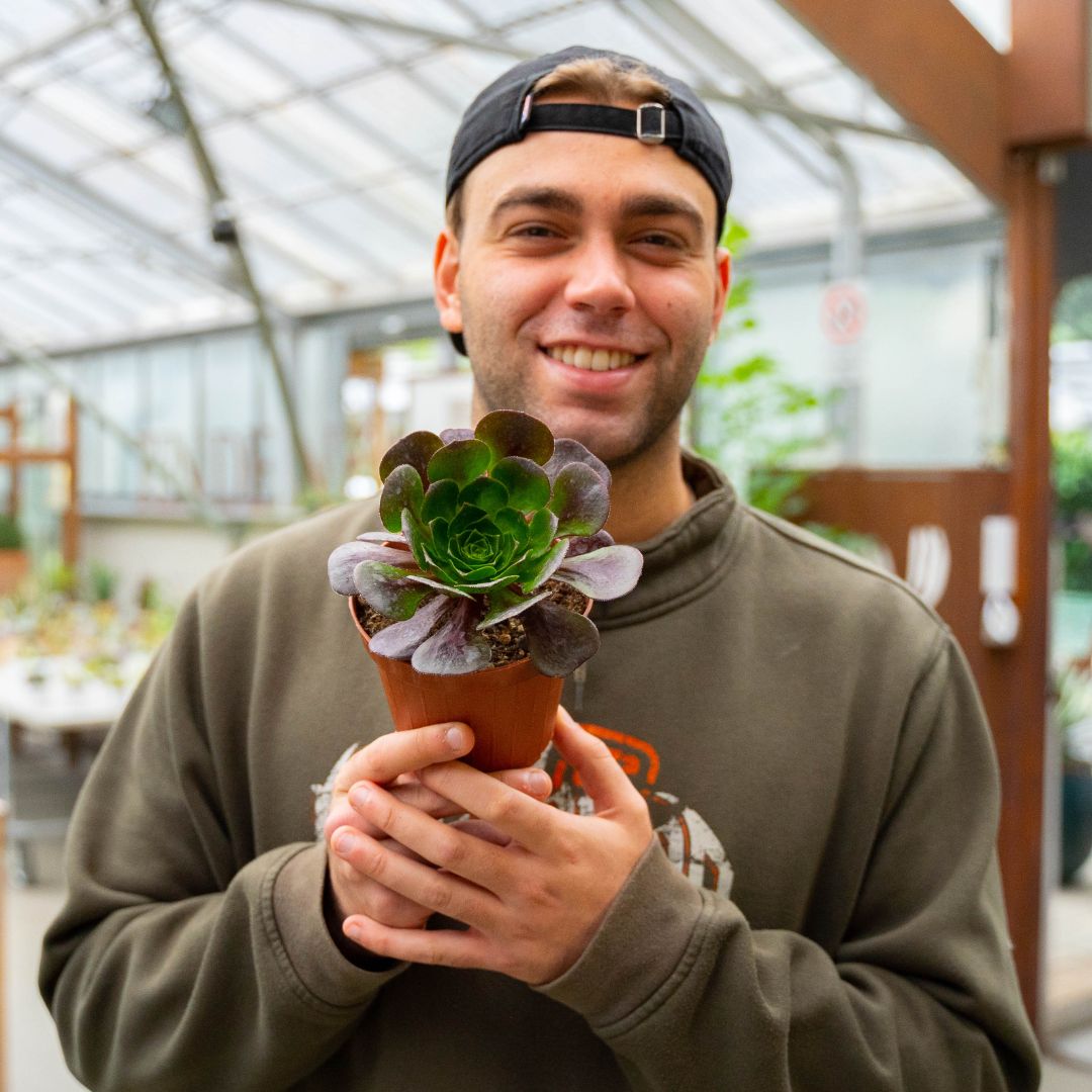Ce Semponium est appelé ‘Destiny’ parce qu’il a des feuilles veinées – on peut lire l’avenir entre les lignes ! L’une des caractéristiques les plus inhabituelles de cette plante est la présence de nervures rouge brique sur les feuilles. Selon la saison, la végétation varie du vert vif au rouge pourpre très profond. Cette plante peut produire une très grande rosette centrale plate pouvant atteindre 60 cm de diamètre. Les nombreuses pousses latérales se développent et se ramifient abondamment.